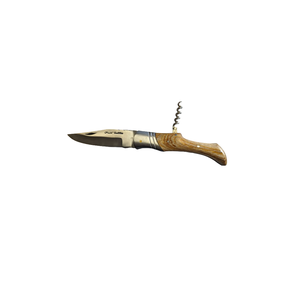 Bonjour Armurerieenligne\r\nPour cadeau de fin d\'année au proche Bushcraft \r\nCouteau tire-bouchon solide manche bois \r\nLame signée Pradel Made China mais solide tranchante\r\nDu bon Matos RAS\r\nCordialement