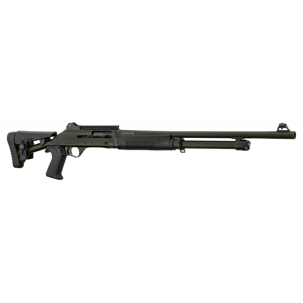 Aksa vous propose une version en catégorie C de son fameux fusil tactique, réplique du Benelli M4. Il est disponible en trois finitions : noir, tan et od green. En calibre 12/76, ce fusil sera ici limité à 2 + 1 coups et sera livré avec 3 chokes (F, M et Cyl). Vous pourrez tirer des munitions pouvant aller jusqu'à 50g comme des munitions de faible charge grâce à sa conception robuste.