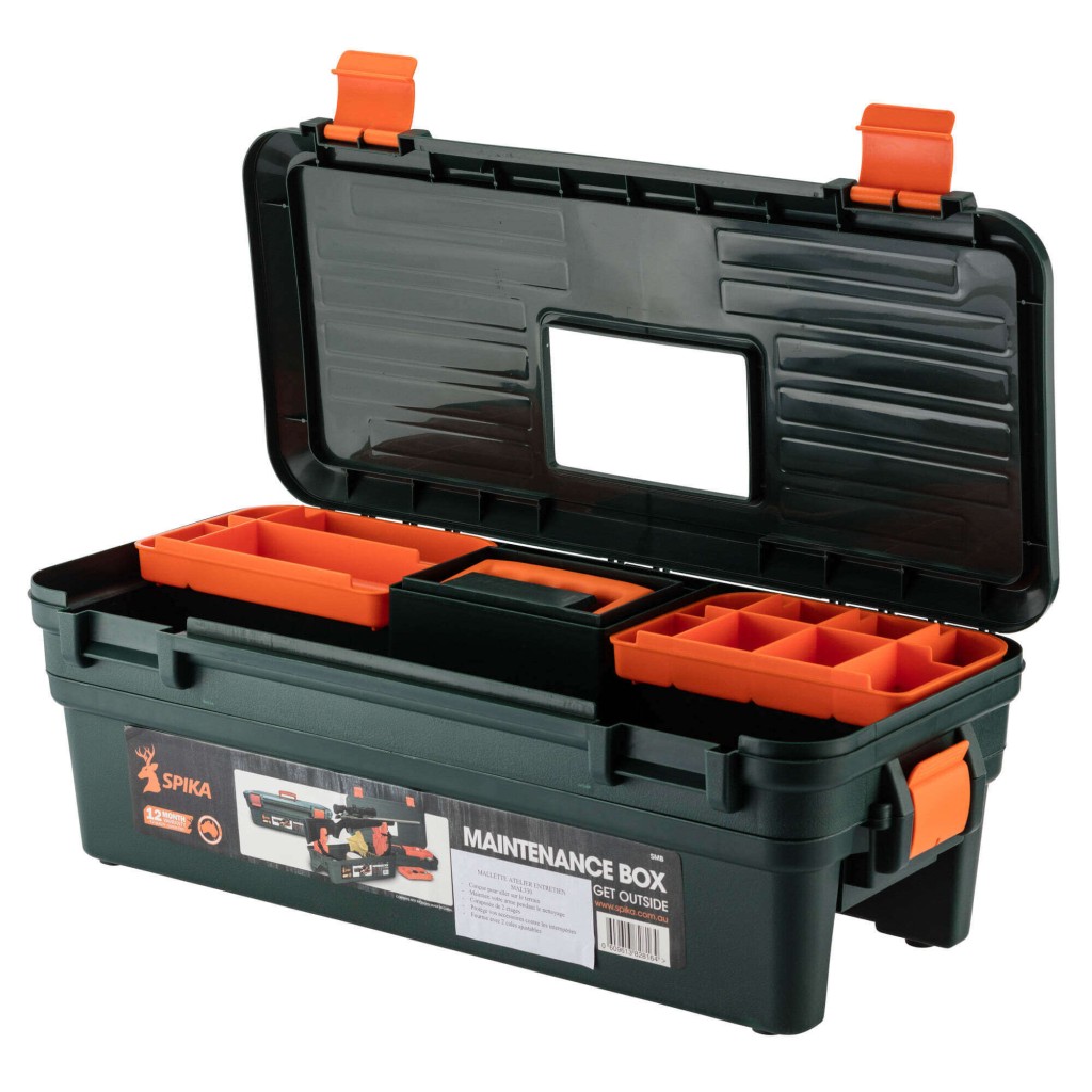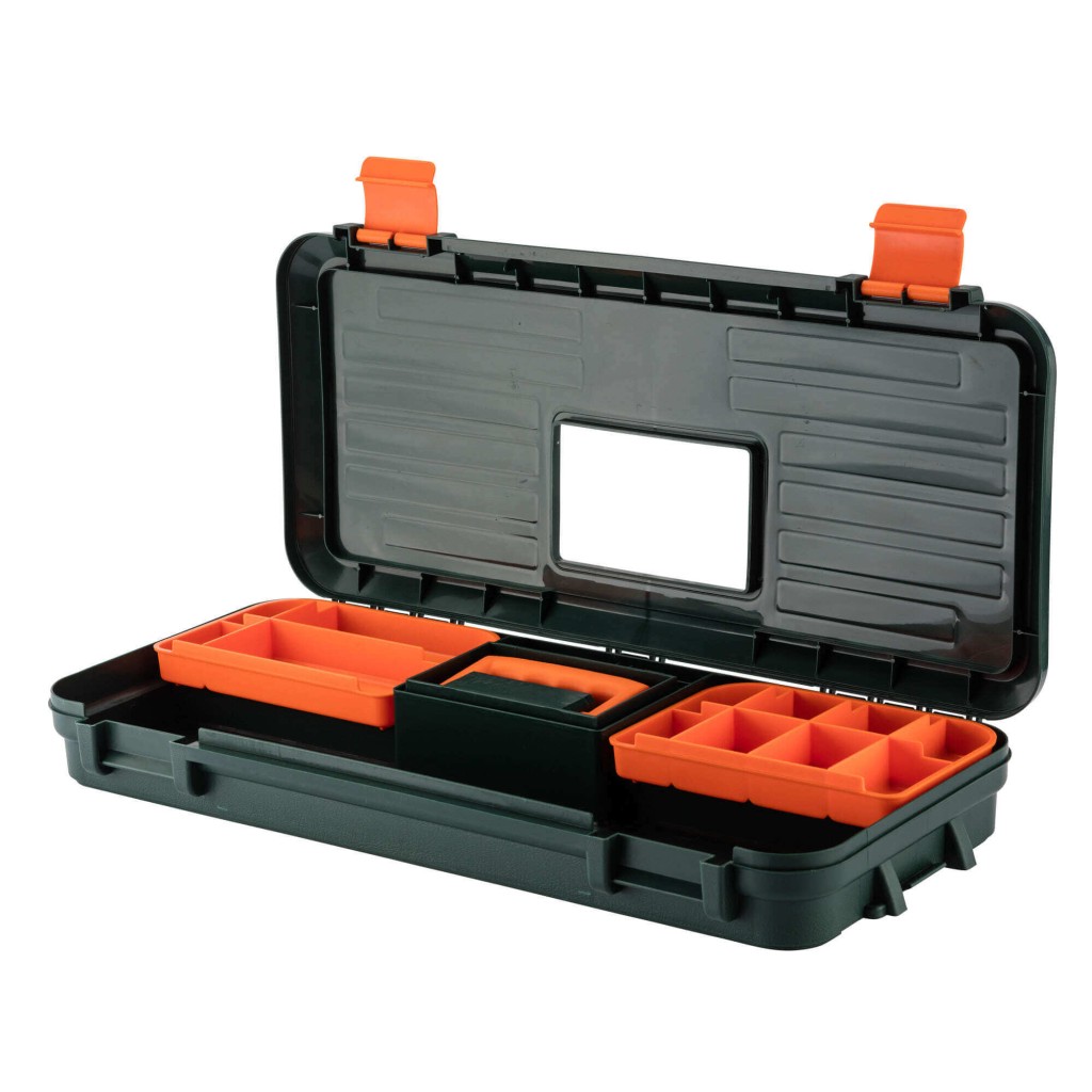 Vous trouverez deux compartiments permettant le rangement et le transport de vos accessoires de nettoyage : écouvillons, cordon de nettoyage, chiffon, lubrifiant, huile, ... Avec cette mallette, tout votre nécessaire d'entretien sera à l'abri des intempéries et facilement transportable grâce à la poignée présente sur le dessus.