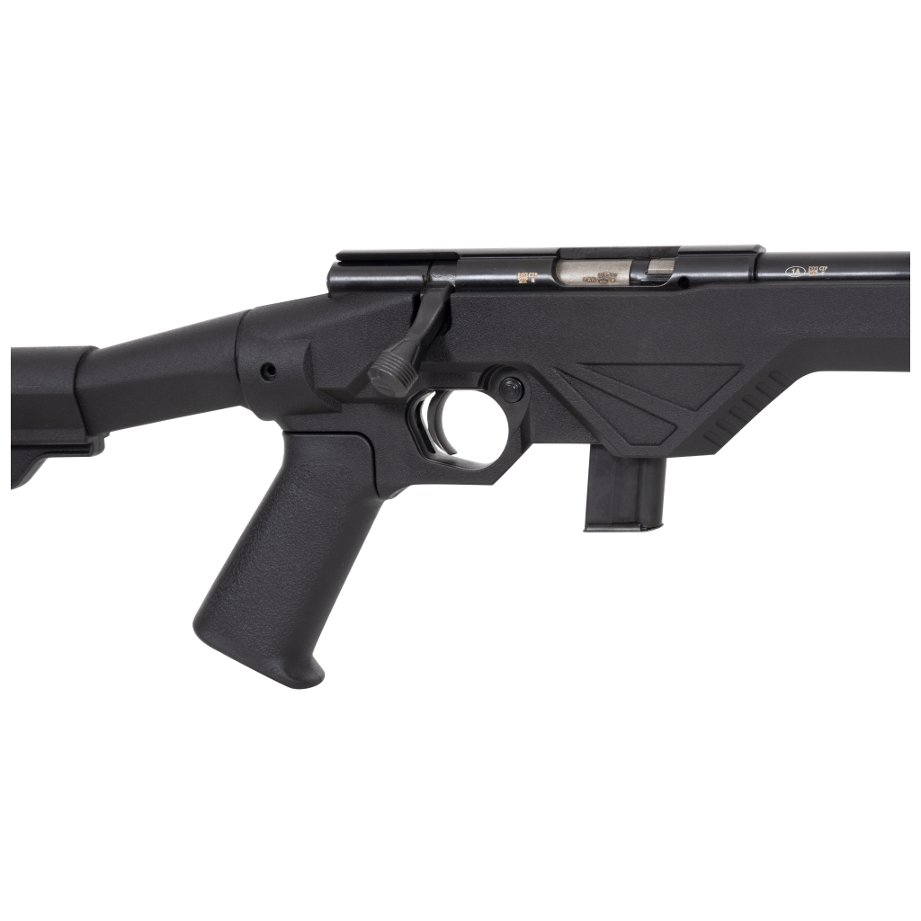 La TRAKR est une carabine à verrou moderne avec un look squelettique. Citadel l'a équipée d'un garde main ajouré, d'une poignée pistolet ainsi que d'une crosse tactique avec une plaque de couche en caoutchouc. Avec un poids de 1,64 kg, cela en fait une arme parfaite pour du tir de loisir ou de précision pour toute la famille ! La TRAKR est fine, légère et très maniable tout en gardant l'efficacité d'une bonne carabine de tir de précision.