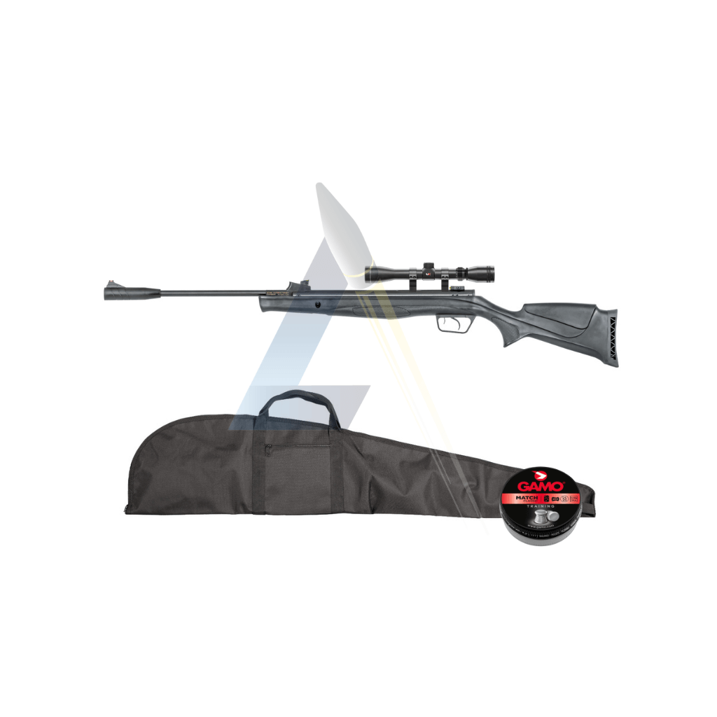 La carabine à plomb Umarex R-Force Target vous sera ici livrée en pack prêt à tirer afin de ne pas vous préoccuper à chercher les éléments nécessaire à la mise en oeuvre de votre arme. Pour cela, nous vous fournissons une housse de rangement et de transport de la marque Umarex vous permettant de stocker votre arme en tout sécurité. Une boîte de consommables est ajoutée au pack pour que vous puissiez commencer à tirer dès réception de votre arme ! Enfin, une lunette de tir de la marque Umarex en 4x32 sera ajoutée pour plus de précision dans vos tirs !