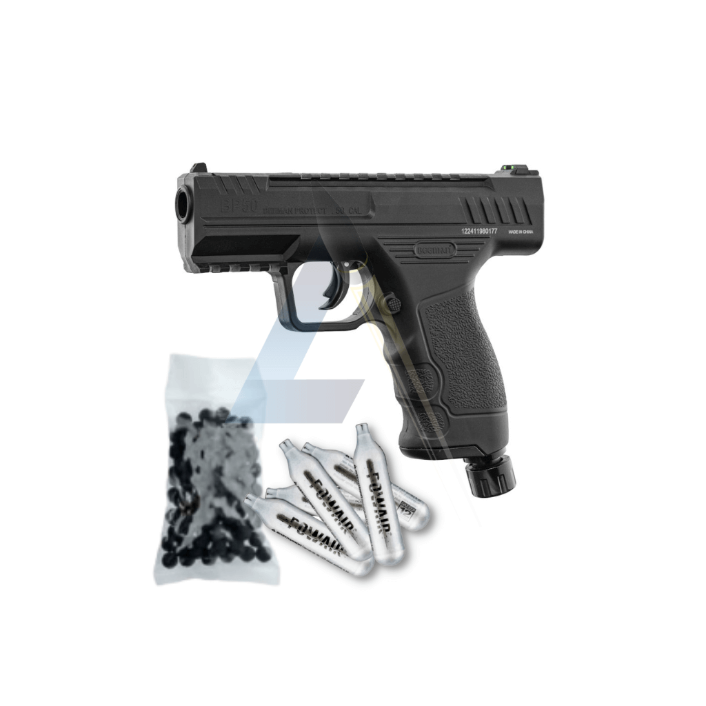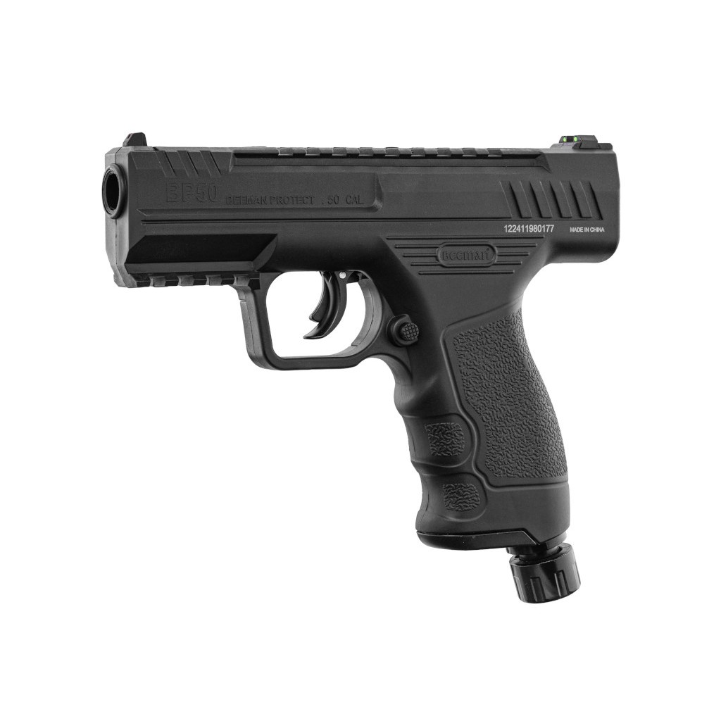 Le pistolet de défense Beeman BP50 est une arme non létale conçue pour offrir une protection personnelle efficace et immédiate. Fonctionnant avec une cartouche de CO2 de 12g, il propulse des billes en caoutchouc de calibre .50 avec une énergie pouvant atteindre 15 joules, garantissant un effet de choc puissant capable de dissuader un agresseur. Son apparence réaliste renforce son effet dissuasif, tout en restant dans la catégorie des armes de défense autorisées et accessible à toute personne majeure.