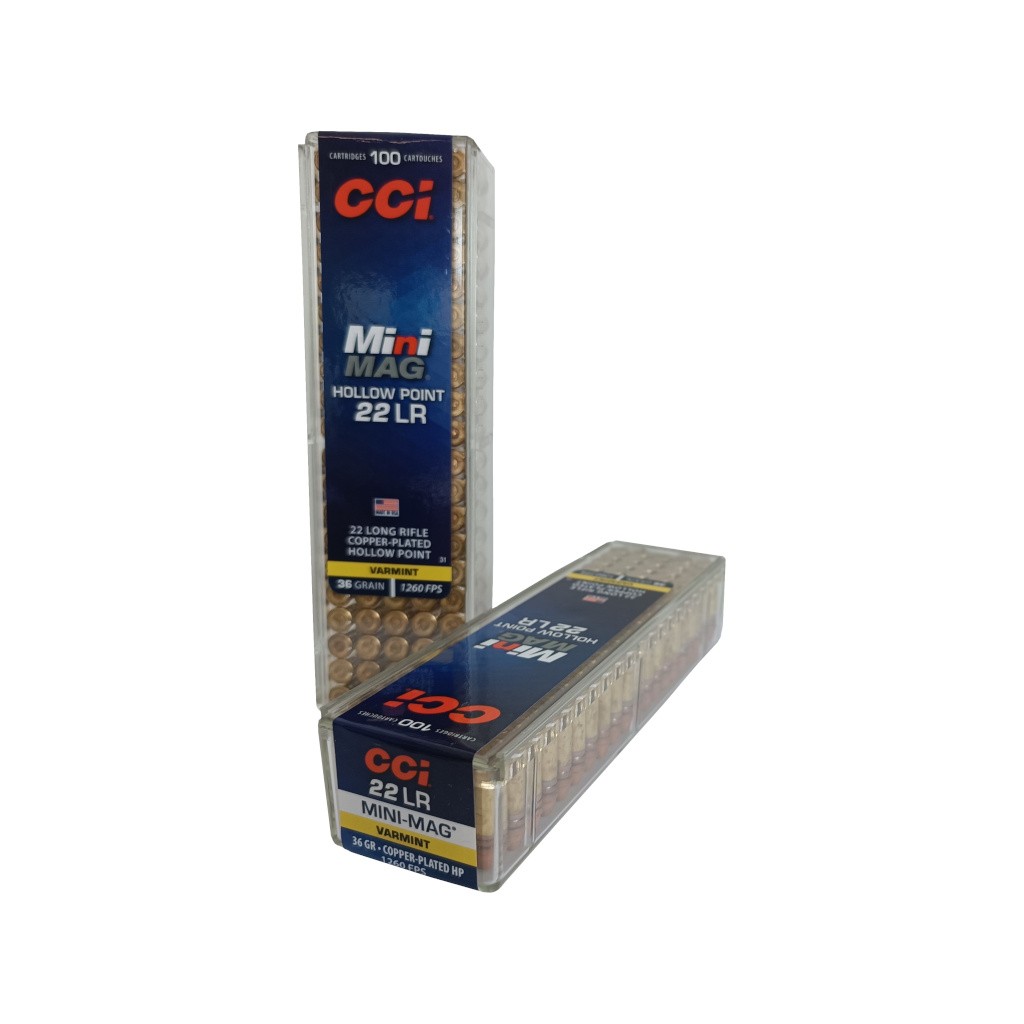 Cette munition par CCI possède une ogive plaquée cuivre (36 grains) ce qui lui donne une bonne pénétration dans l'air. Avec une tête creuse, la balle aura une expansion maximale lors de l'impact. Ainsi, l'ogive s'écrasera à l'impact et limitera le risque de ricochet. C'est également une munition à létalité supérieure, gage d'efficacité.