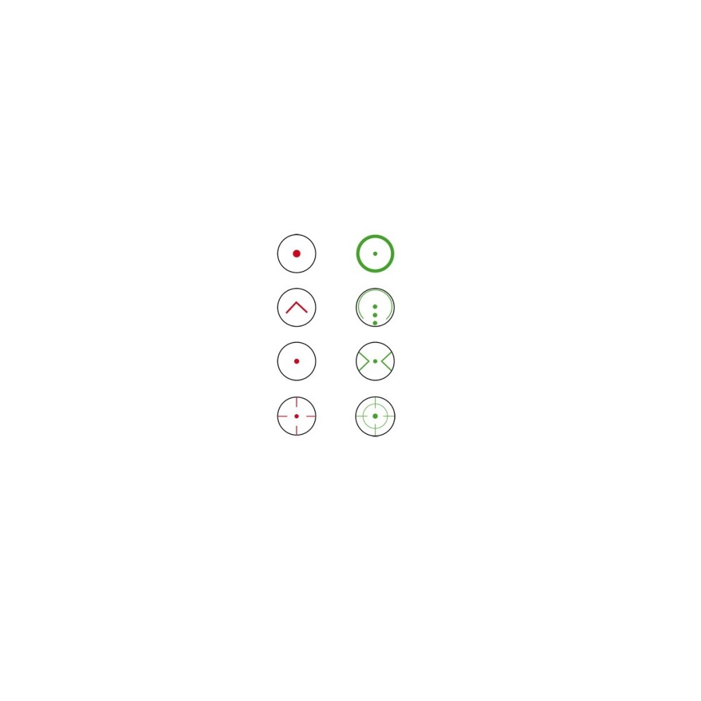 Konus vous propose un viseur point rouge avec 8 réticules interchangeables. Cela entraine donc une variation de la taille du réticule qui sera entre 2 et 5 MOA en fonction du réticule choisi. Ces réticules pourront s'éclairer en rouge ou en vert selon vos besoins. Il sera alimenté par une pile CR2032 incluse.